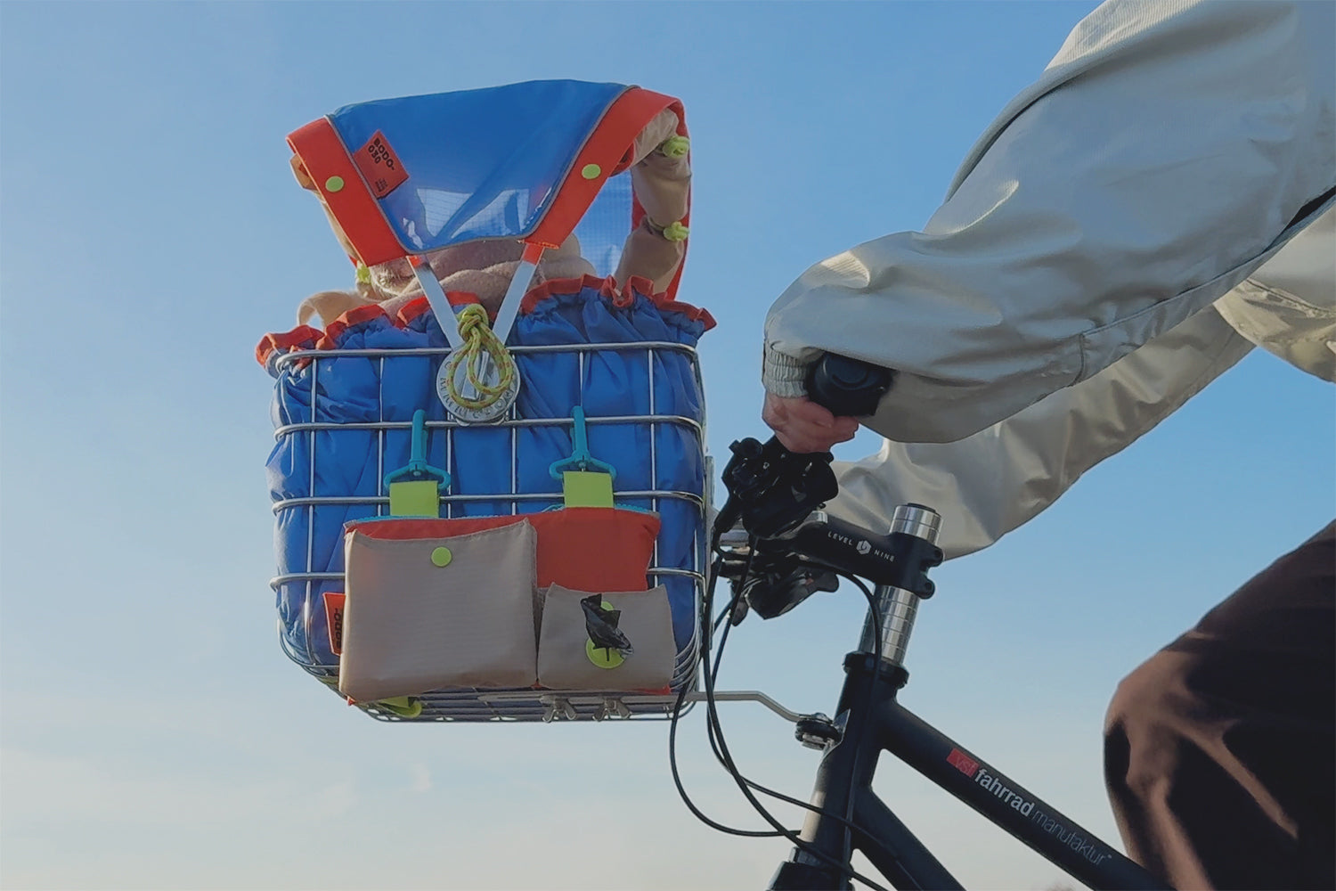 Der FlyingBodo funktioniert auch als robuster Fahrradkorb für Einkäufe, Ausrüstung oder Gepäck – ohne Umbau.